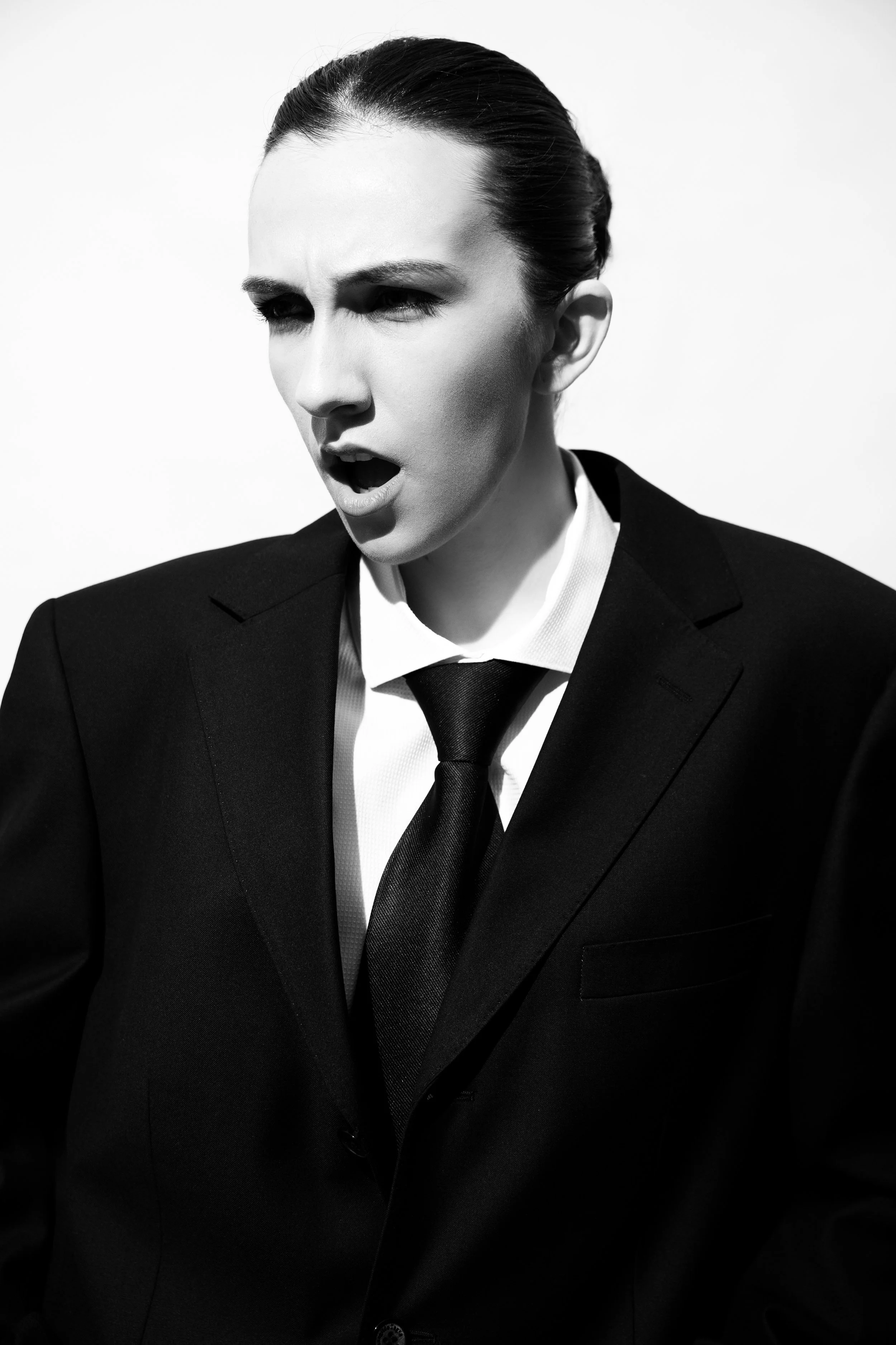 "Suits" explores how the traditionally masculine symbol of the suit becomes a powerful tool for female empowerment. The work is a visual manifesto of equality and inner strength.